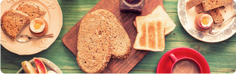 Er is margarine, echte boter, honing en jam. Ook is er stroop, hagelslag, knäckerbrod, beschuit, muesli en fruit. Uiteraard ontbreekt de koffie en thee niet.